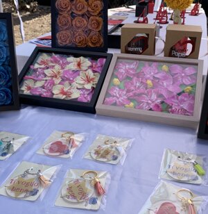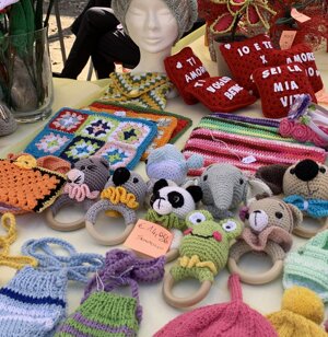 mercatino primaverile con bancarelle di artigianato artistico, ingegno a carattere creativo, hobbisti e hand made