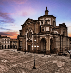 Pregevole esempio di architettura romanica, è la chiesa più antica della città, intitolata a Sant'Ilario e Giorgio e dal punto di vista storico rappresenta uno dei principali monumenti cittadini. A causa del colore dei mattoni usati per la sua costruzione è nota anche con il nome di Chiesa Rossa. La Cavalleria Italiana nel 1956, la elesse ufficialmente Tempio Sacrario e l'edificio al suo interno, conserva tutti gli stemmi appartenenti ai reggimenti dell'Arma.